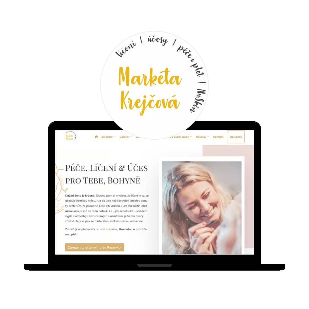 Pro Markétu, vizážistku z Poděbrad, jsem vytvořila nový web, který odráží jemnou ženskou estetiku její značky. Design jsem postavila na kombinaci růžové a zlaté, aby působil elegantně, moderně a zároveň ladil s jejím vizuálním stylem. Web je přehledný, responzivní a doplněný o rezervační systém, díky kterému si klientky mohou snadno a pohodlně objednat termín online – a to jak pro běžné služby, tak i pro speciální akce. Výsledek? Web, který nejen reprezentuje Markétinu práci, usnadňuje její podnikání, šetří čas při komunikaci s klientkami a pomáhá přivádět nové zákaznice.